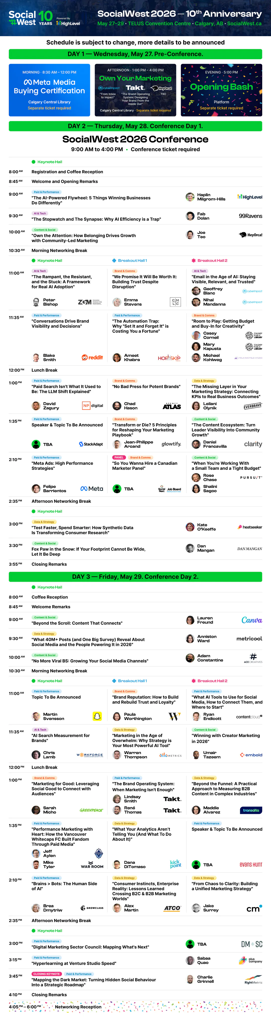 Kick off SocialWest's 10th anniversary at Platform on 27th. Connect with attendees, speakers, and sponsors over drinks, entertainment, and an evening of networking in one of Calgary's most unique venues. This is how the week begins.